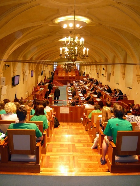 Pro některé začala akce už o den dříve, přespáváním v naší Ekotřídě, protože jsme vyjížděli už v pět hodin ráno, abychom byli na místě co nejdříve. Hlavním cílem byl Valdštejnský palác, kde slavnostní předání titulů Ekoškola probíhalo. Po předání jsme měli možnost prohlídky paláce, nahlédli jsme i do senátu, který se nachází v této budově v bývalé konírně. Ohromeni touto barokní stavbou jsme se rozhodli navštívit další pamětihodnosti hlavního města. Šli jsme přes Karlův most, Staroměstské náměstí, obdivovali Orloj i voskové figuríny slavných osobností. Další zastávka byla v Muzeu čokolády, kde jsme se dozvěděli o výrobě čokolády, která začíná u kakaových bobů, a viděli jsme ukázku výroby typické čokoládové pralinky. Poslední zastávkou na naší cestě bylo muzeum, ve kterém jsme poznali starodávné mučicí nástroje. Cesta zpět na hlavní nádraží byla zpestřena ještě Prašnou bránou a Národní českou bankou.
