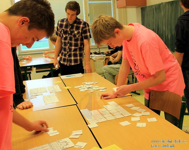 Soutěžilo 11 týmů po 5-ti žácích. Naši studenti prováděli týmy po stanovištích a měli pod kontrolou provádění činností a plnění úkolů. Vše probíhalo v odborných učebnách a v dílnách.