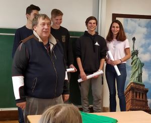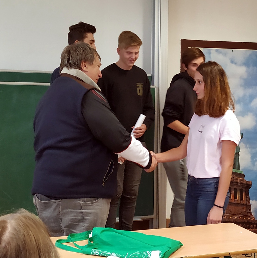 V úterý 8. října 2019 jim osobně přijel předat ocenění za první a třetí místo v kategorii střední škol Mrg. Milan Vykydal, vedoucí Moravského kartografického centra, a velmi příjemně tak zakončil celou akci. Děkujeme!