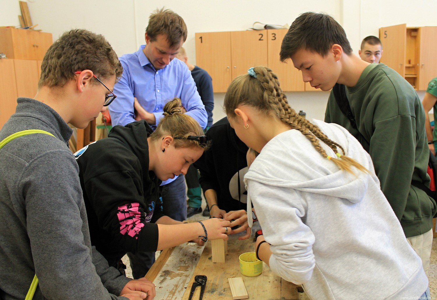 Soutěžící plnili úkoly v truhlářských dílnách, učebně aplikované informatiky a zkusili si i modelové projektování. Naši žáci a učitelé připravili úkoly tak, aby soutěžící „ochutnali“ odbornou přípravu našich nábytkářů a truhlářů. V dílně pracovali s masivním dřevem, z kterého vyráběli jednoduchou krabičku. V učebně IKT jim byly představeny CAD systémy a každý tým navrhoval kuchyňskou linku. Řešili rozmístění skříněk, jejich rozměry, barevnost a strukturu povrchů. Některé návrhy byly velmi zajímavé, těšil nás jejich projevený zájem o práci bytového návrháře. Na třetím stanovišti se vyráběl návrh pracovního stolu v podobě modelu z balsového dřeva. Soutěžící týmy musely dodržet základní rozměry a převádět jednotky, projevit manuální zručnost, estetické cítění a smysl pro detail a přesnost. Podařilo se vytvořit nápadité a funkční návrhy.