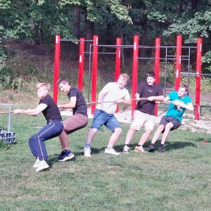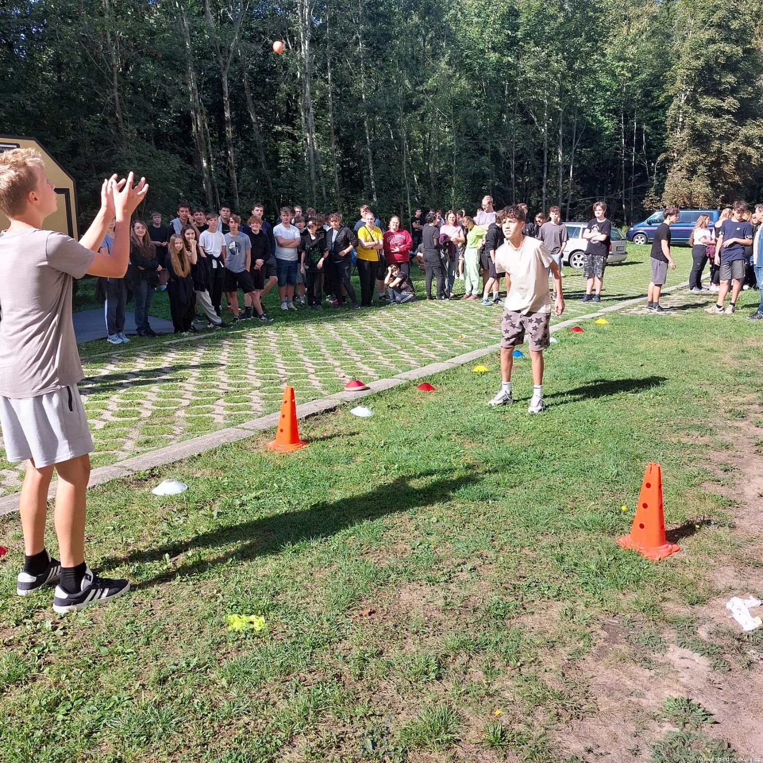 Druhý den patřil zábavným soutěžím a týmovým výzvám. Účastníci si vyzkoušeli například zatloukání hřebíku na čas, obracení deky naruby, člunkový běh, chůzi na chůdách nebo výdrž v pozici „holubičky“. Nechyběla spousta smíchu, fair play a povzbuzování mezi spolužáky.