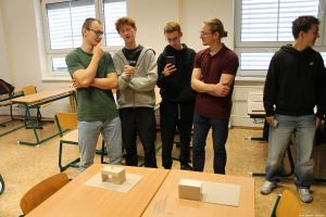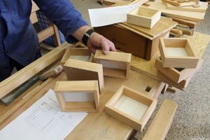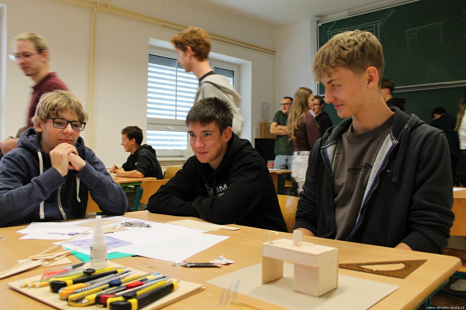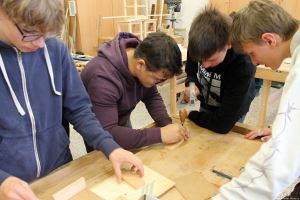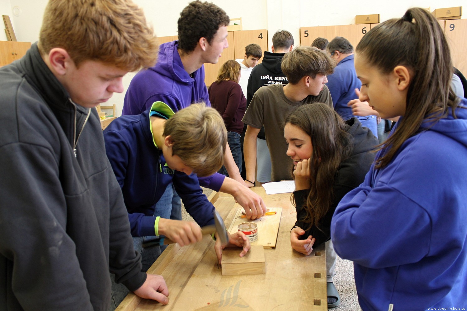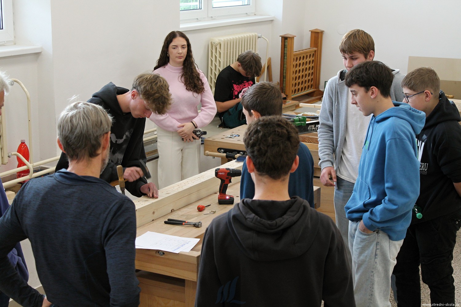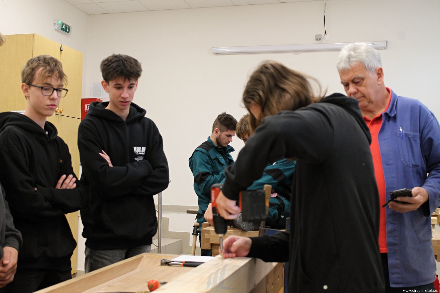Soutěžící plnili úkoly v truhlářských dílnách, učebně aplikované informatiky a zkusili si i modelové projektování. Naši žáci a učitelé připravili úkoly tak, aby soutěžící „ochutnali“ odbornou přípravu našich nábytkářů a truhlářů. V dílně pracovali s masivním dřevem, z kterého vyráběli jednoduchou krabičku. V učebně IKT jim byly představeny CAD systémy a každý tým navrhoval kuchyňskou linku. Řešili rozmístění skříněk, jejich rozměry, barevnost a strukturu povrchů. Některé návrhy byly velmi zajímavé, těšil nás jejich projevený zájem o práci bytového návrháře. Na třetím stanovišti se vyráběl návrh pracovního stolu v podobě modelu z balsového dřeva. Soutěžící týmy musely dodržet základní rozměry a převádět jednotky, projevit manuální zručnost, estetické cítění a smysl pro detail a přesnost. Podařilo se vytvořit nápadité a funkční návrhy.