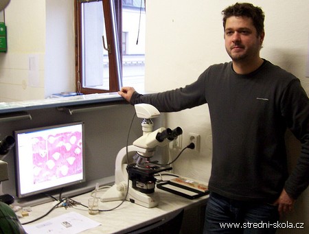 svoji specifickou skladbu. Na monitoru je vidět kamerou snímaný vzorek