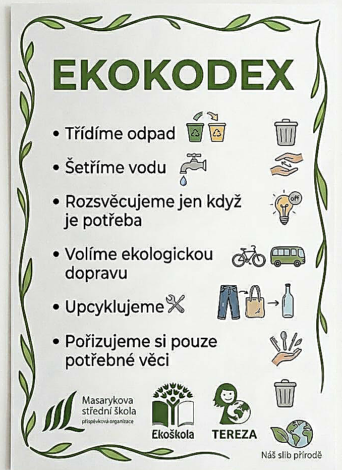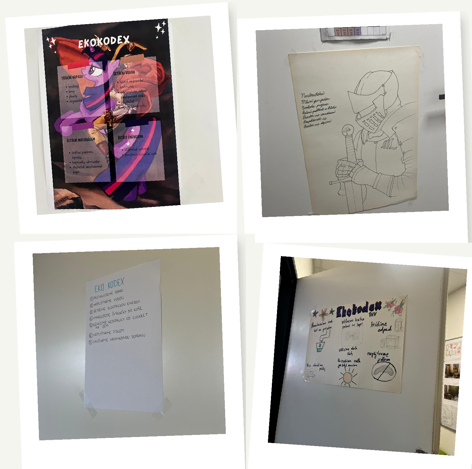 Na tvorbě školního ekokodexu se tak podíleli žáci různých ročníků, se svými pohledy, zkušenostmi i nápady. Výsledkem je dokument, který není „nařízením shora“, ale společnou dohodou celé školy. Školní ekokodex je umístěn na školní ekonástěnce, kde je přístupný všem – žákům, pedagogům i návštěvníkům školy.