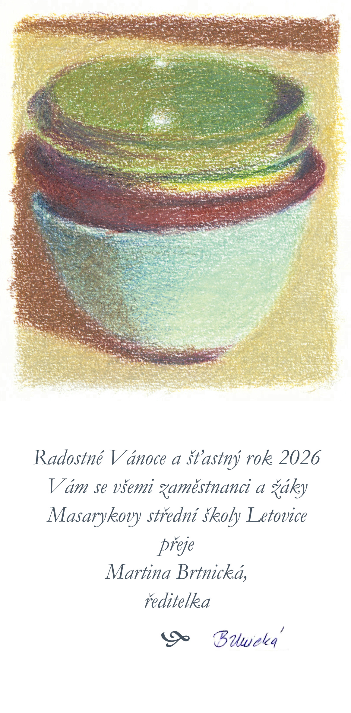Radostné Vánoce a šťastný rok 2026 Vám se všemi zaměstnanci a žáky Masarykovy střední školy Letovice přeje Martina Brtnická ředitelka